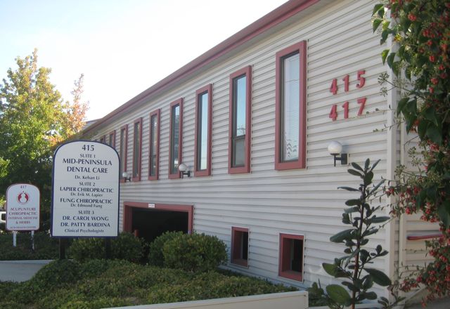 The office is located at 415 North San Mateo Drive, Suite 3, between Peninsula Avenue and East Poplar Avenue, just north of East Poplar. It is conveniently located in San Mateo, California, just a short drive from neighboring cities on the Peninsula including Hillsborough, Belmont, Burlingame, Foster City, Millbrae, San Bruno, San Carlos, Redwood Shores, and Redwood City. It is located off of Highway 101 and easily accessible via El Camino Real, 92, and 280. It is located approximately 5 blocks north of Mills Peninsula Hospital (San Mateo campus) and is halfway between downtown San Mateo and Burlingame Avenue. For directions, please see the map below.